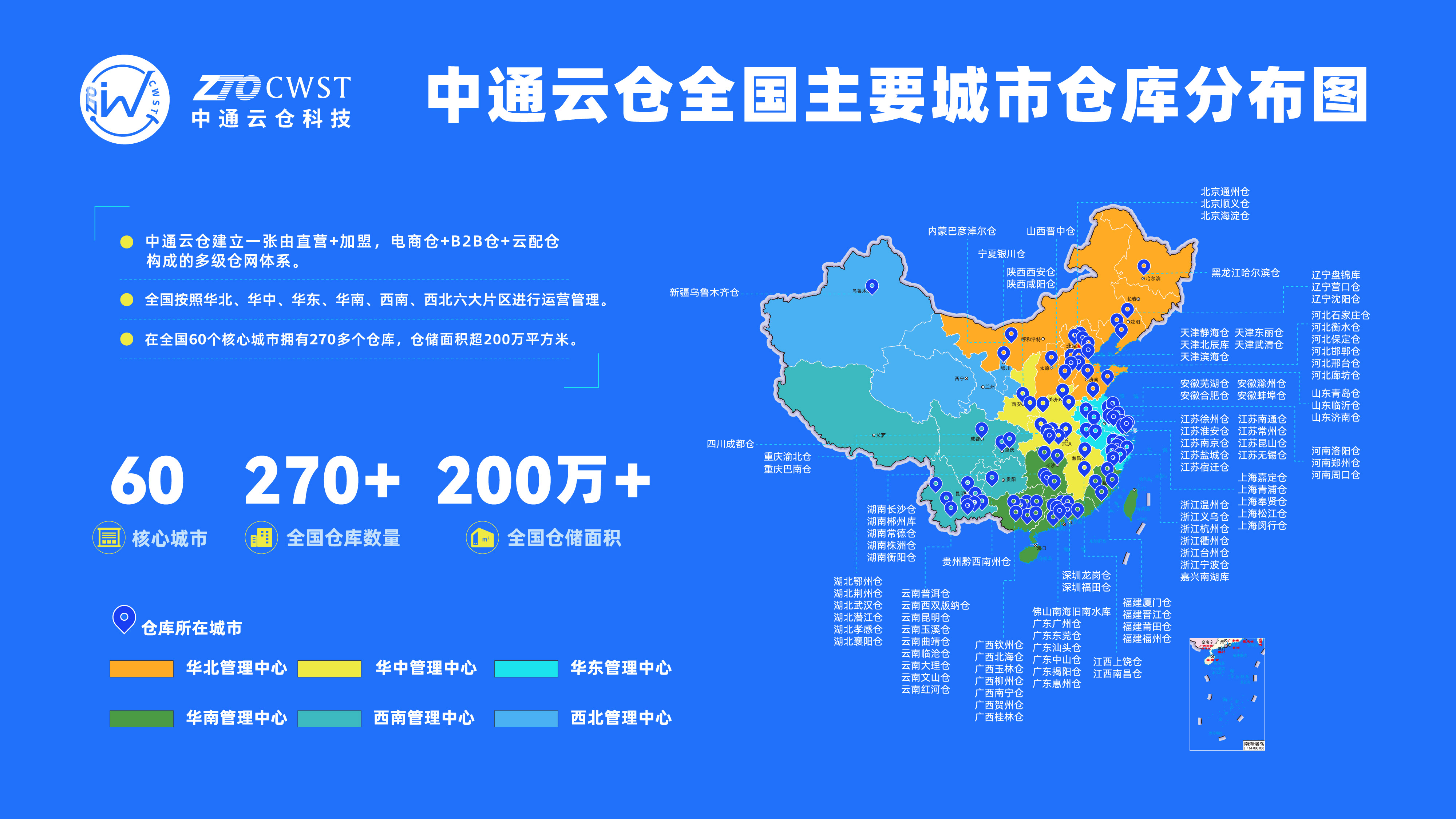 中通云倉科技全國主要城市倉庫分布圖